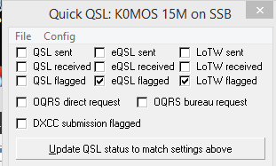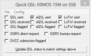 Click on "Update QSL status to match settings above" to save the changes. The LoTW_eQSL Utility will recognize that this record needs to be uploaded.